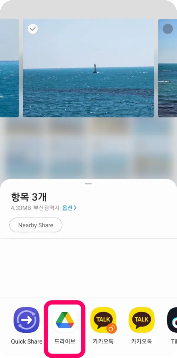 핸드폰에서 바로 사진 공유 기능을 통해 구글 드라이브로 전송하는 것이 효율적일 때가 있습니다