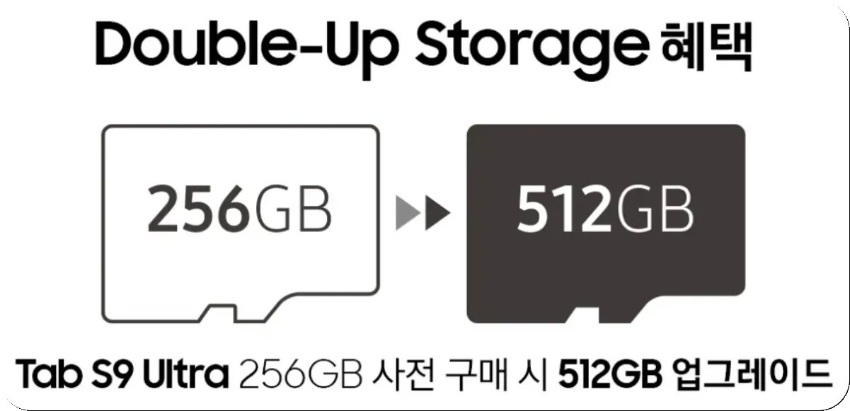 1. 갤탭S9 울트라 256G 구매 시, 용량 2배 업그레이드