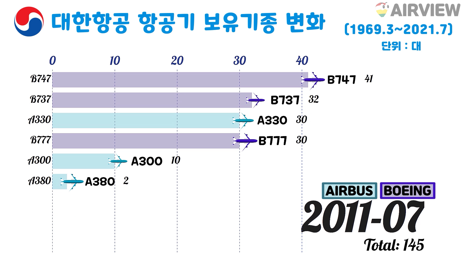 [1988~2021년 7월] 대한항공 vs 아시아나항공 비행기 기종 비교 [BOEING/AIRBUS 항공기]