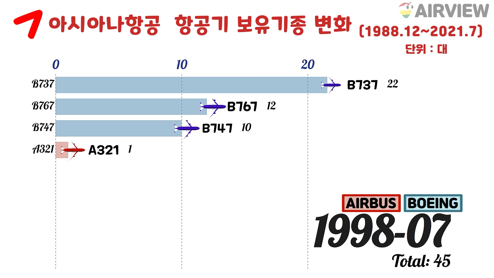1988.12~2021.7 아시아나항공 항공기 보유기종/보유대수 현황 변화
