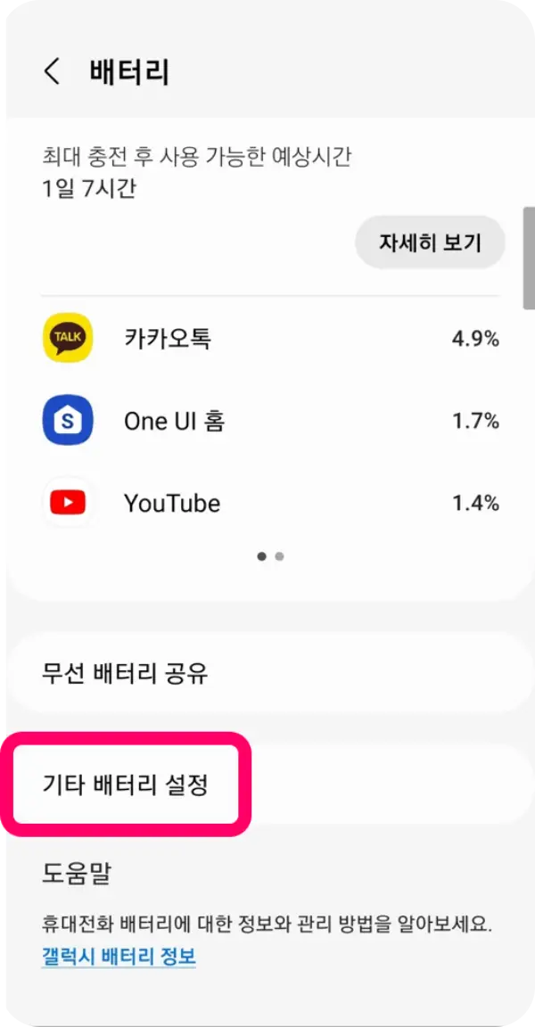 1) 이전 [기타 배터리 설정] 하단 [배터리 보호] 활성화