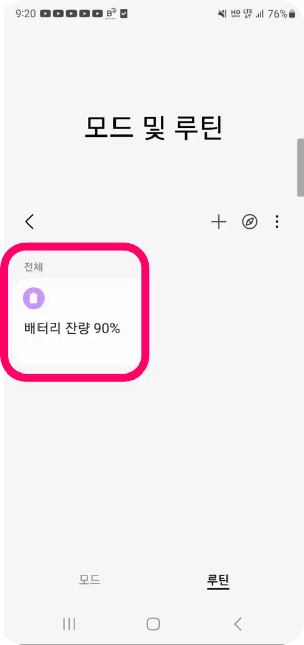 1) 초기 [설정] 메뉴에서 [모드 및 루틴] 클릭
