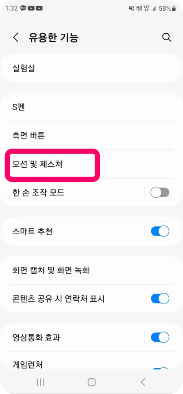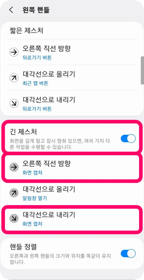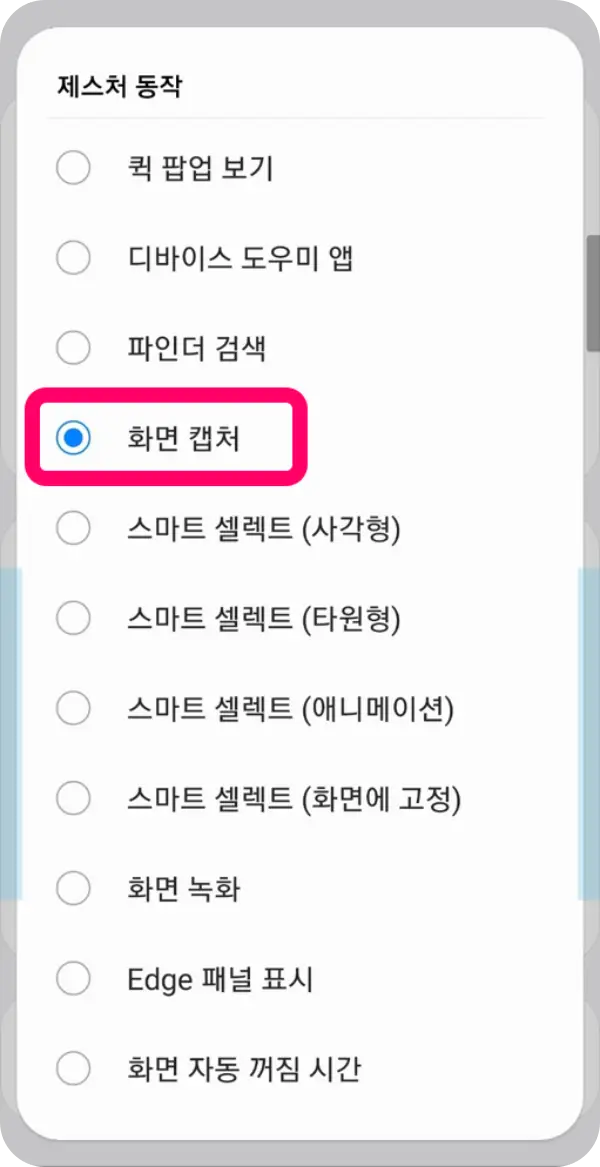 3. 짧은/긴 제스처에 '화면 캡처' 기능 등록