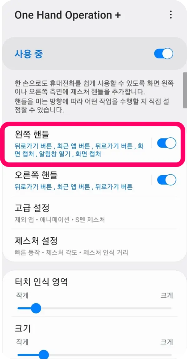 One Hand Operation 기능 활용, 화면캡처 사용하는 방법