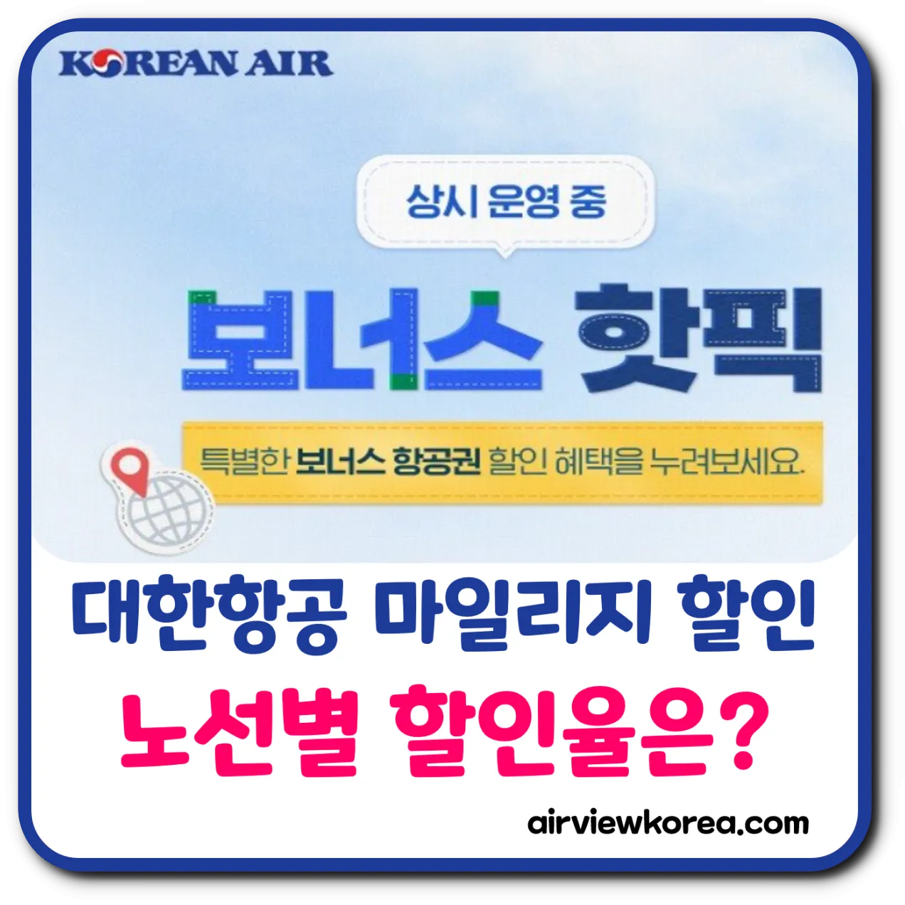 대한항공 마일리지 할인 노선 확인 방법은? (보너스 핫픽)