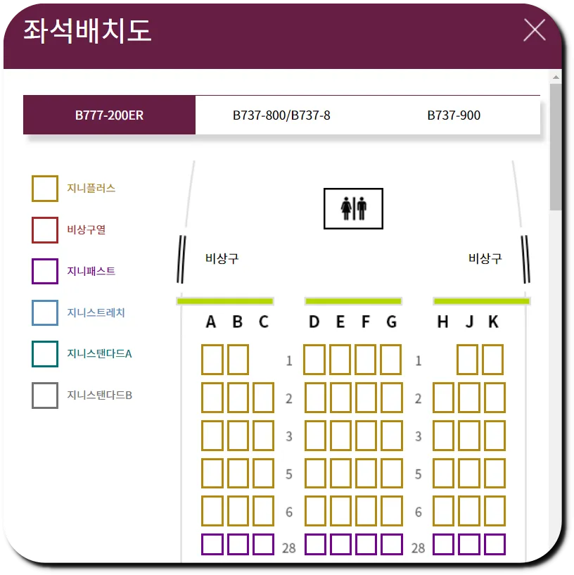 | 진에어 | 지니 플러스 | B777 기종 한정 이코노미석 대비 15cm 넓은 좌석 |