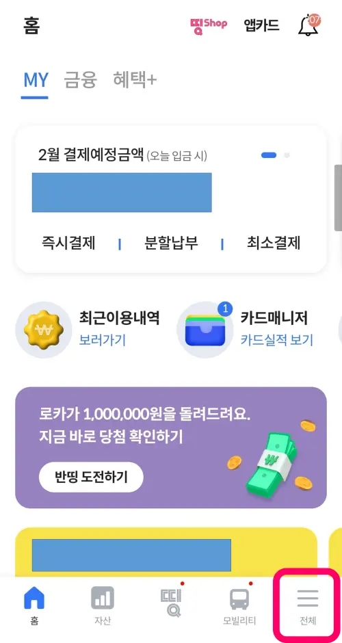 오른쪽 하단에 전체 라고 기재되어 있는 3단 버거바를 클릭해줍니다.