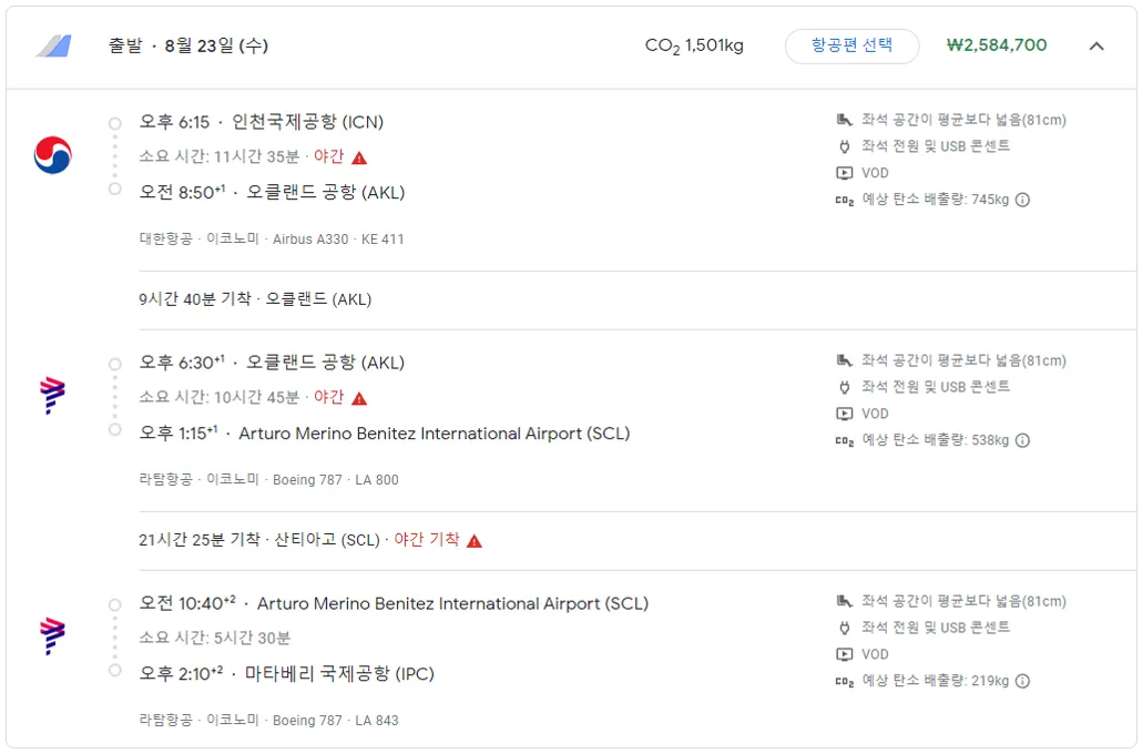 그럼 우리나라에서 이스터섬을 갈 때 어떤 경유 항공편 노선이 있는지 자세히 알려드리겠습니다