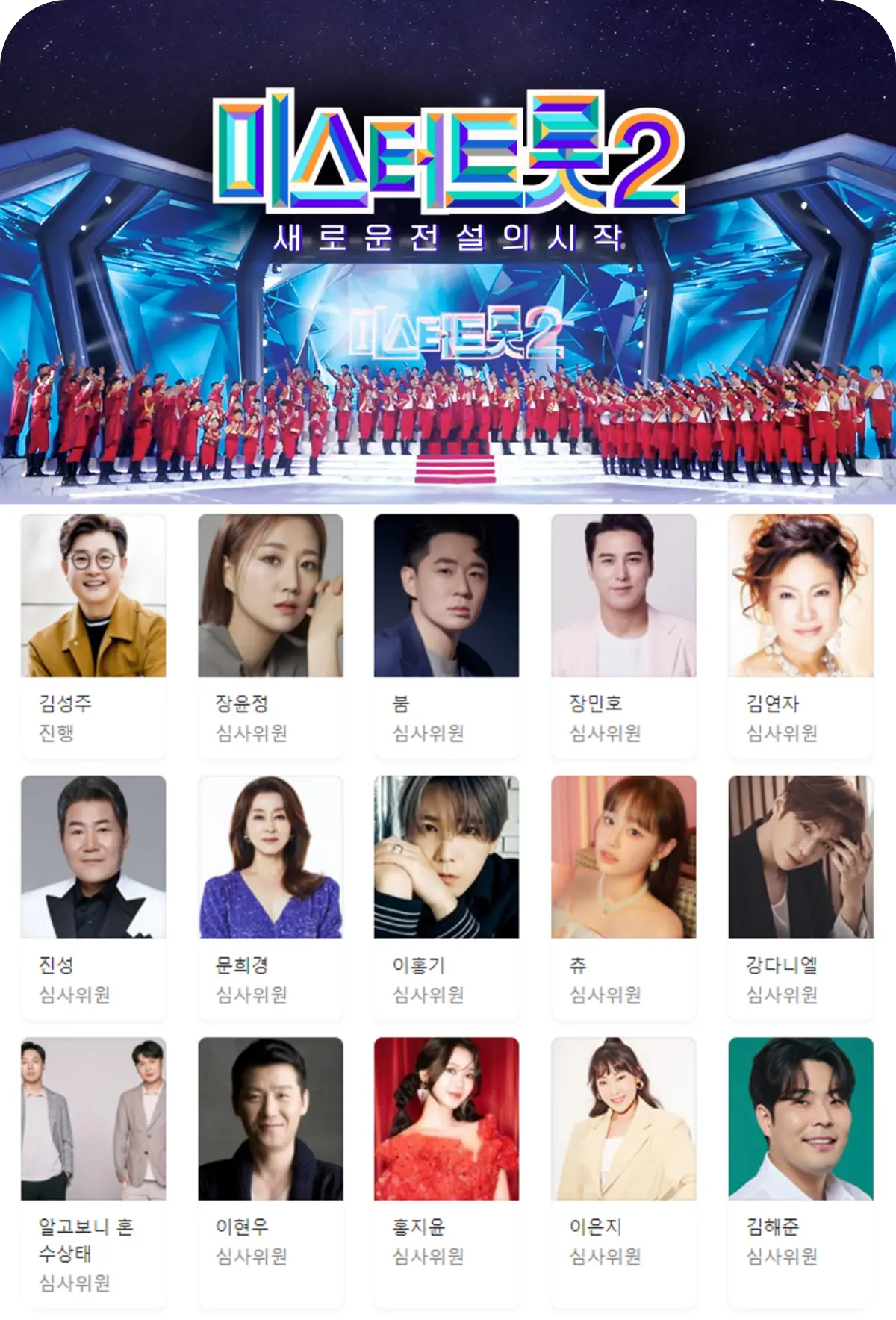 미스터트롯2 팀별 본선 진출 참가자 및 심사위원 명단