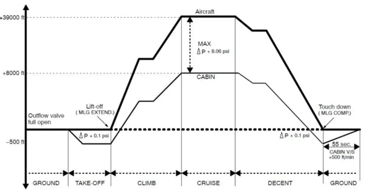 보통 이 8000ft 기준을 객실고도라고 하는데, 전통적인 금속형 몸통을 가진 비행기들의 경우가 이에 해당한다
