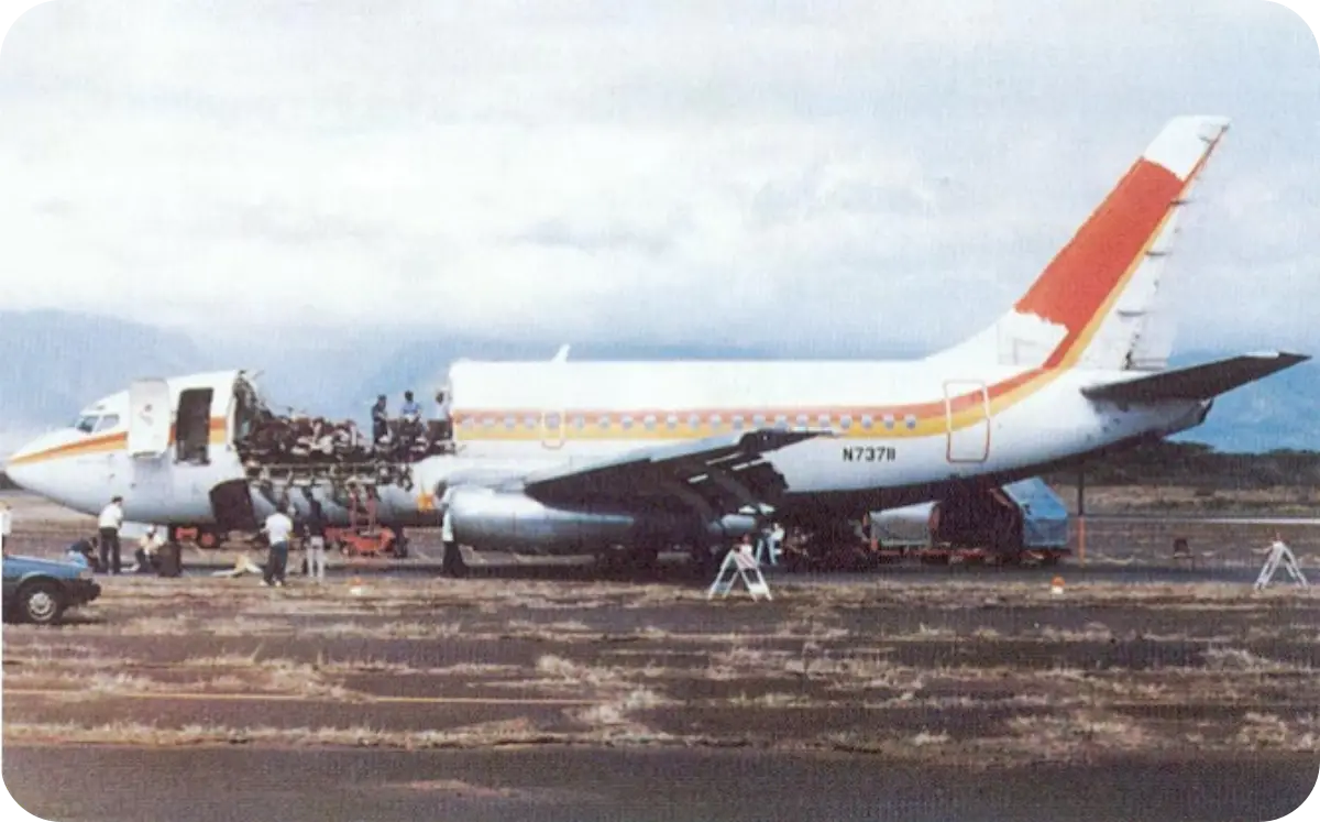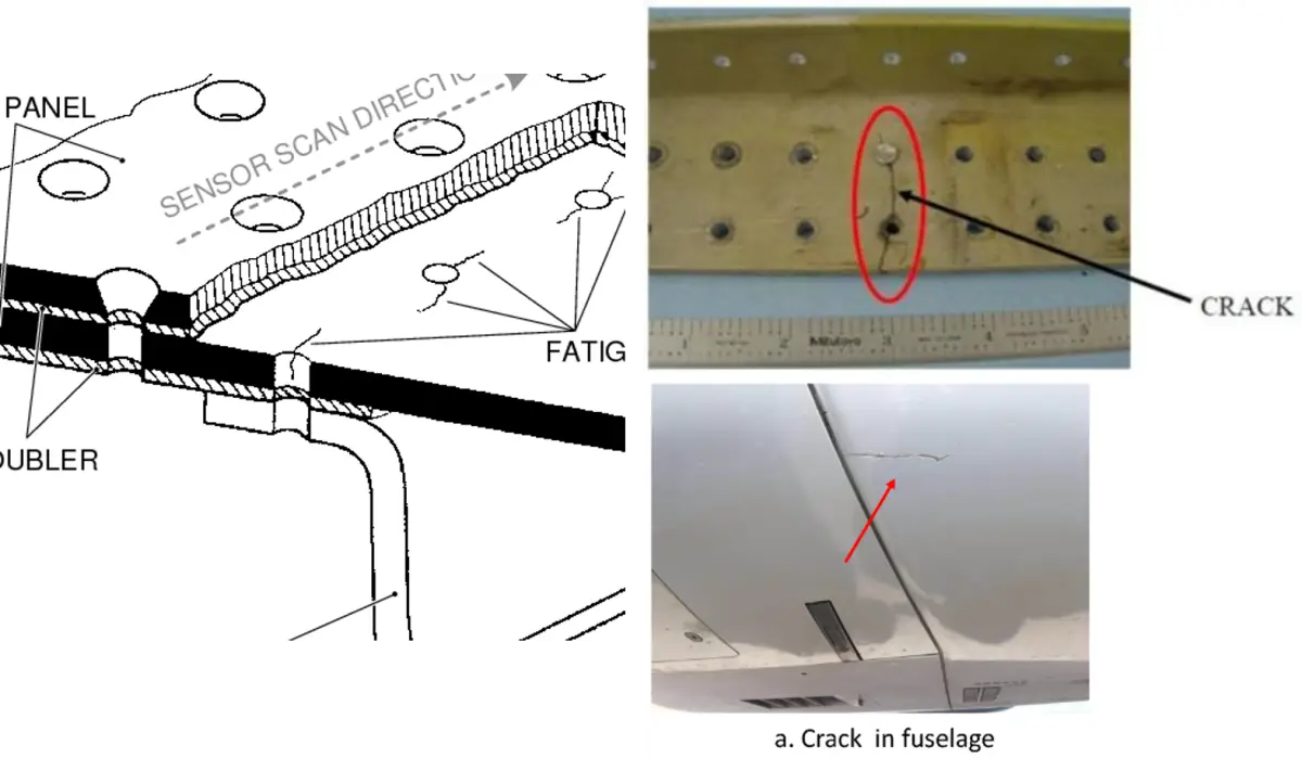금속 피로파괴로 인해 비행 중에 동체 윗부분이 뜯겨 나가는 사고가 있었다.