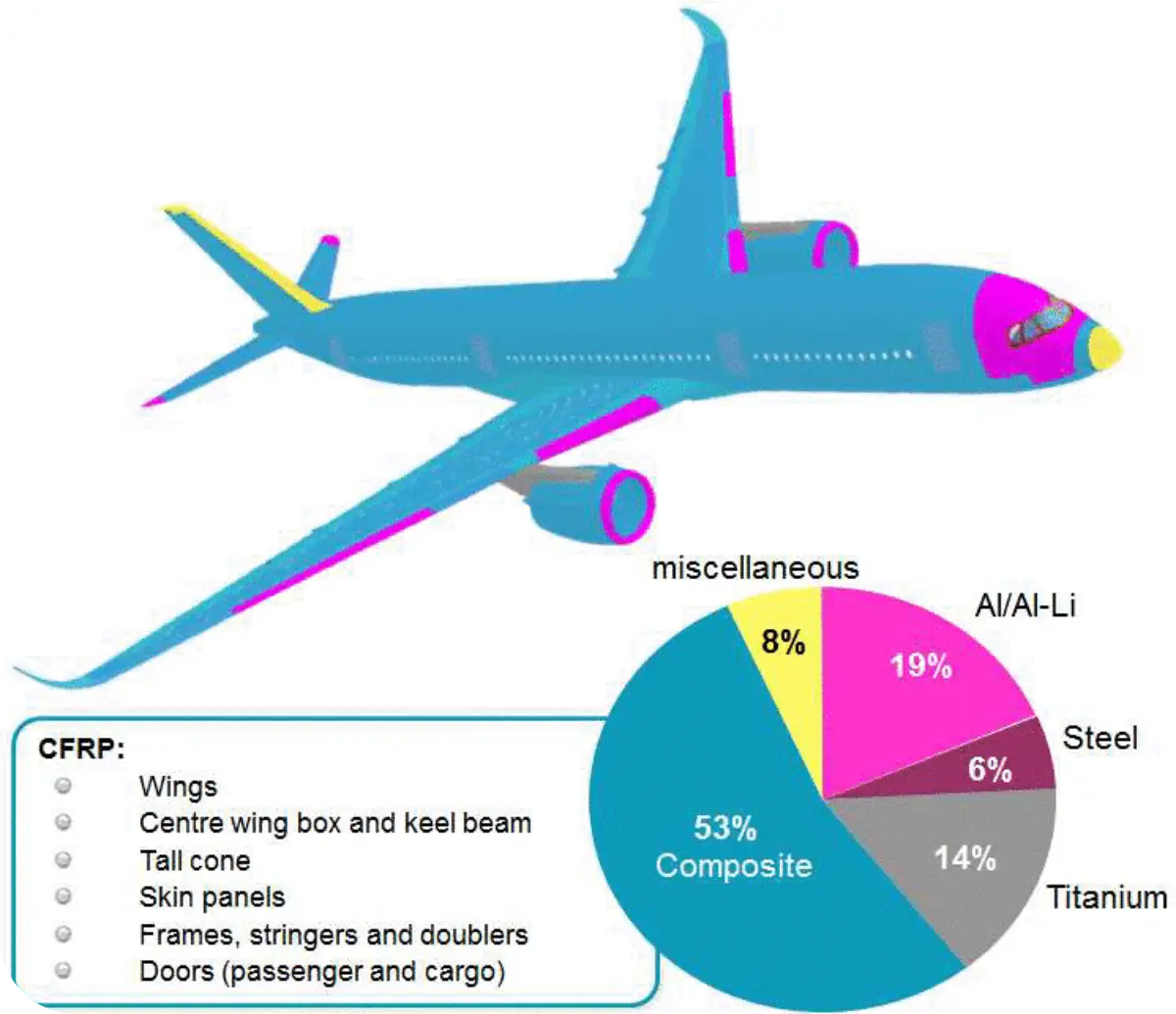 두 항공기 제조사의 신형 기종들은 약 50%를 가볍고 강도가 높은 탄소 강화 복합재(CFRP, Carbon Fiber Reinforced Plastic)로 만들고 있다