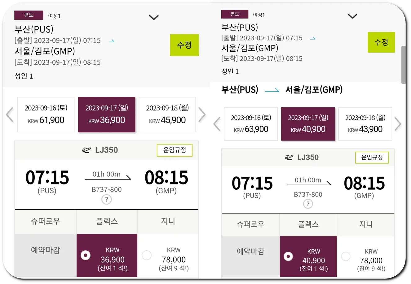 같은 이코노미석인데 왜 가격 차이 심할까요?