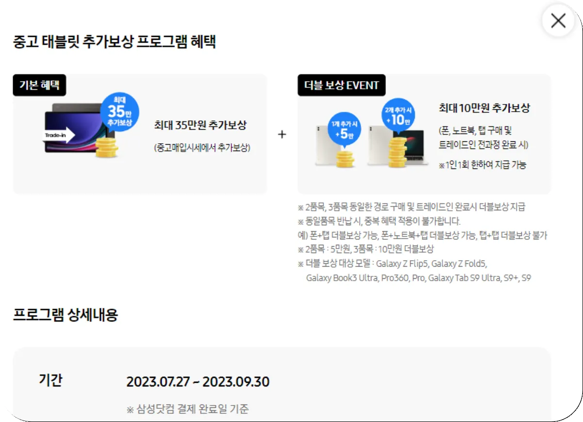 2. 갤럭시탭 중고 반납 시 보상금 혜택
