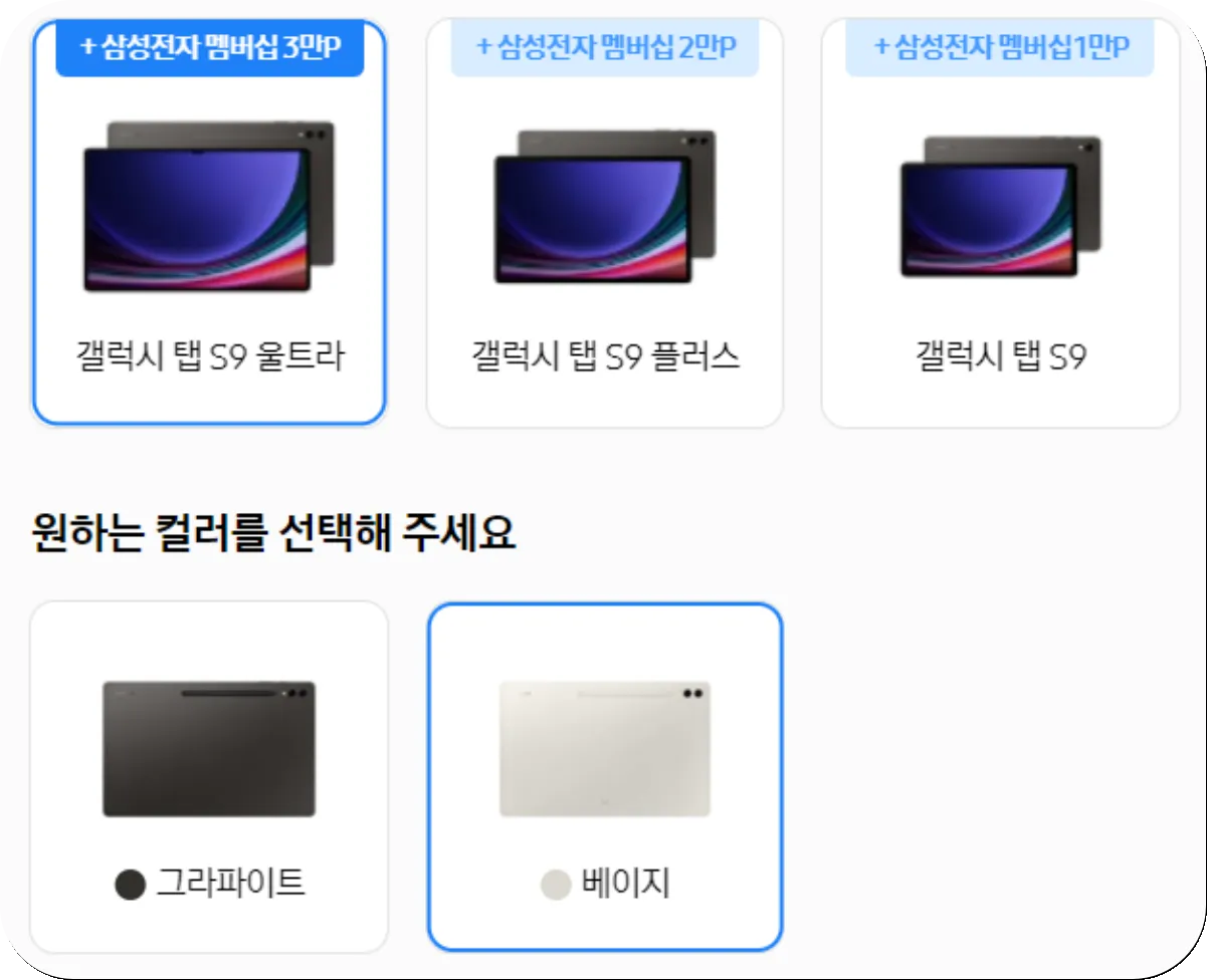 가장 비싼 갤탭S9 울트라 모델의 베이지 색상은 사전예약 물량이 품절되었습니다