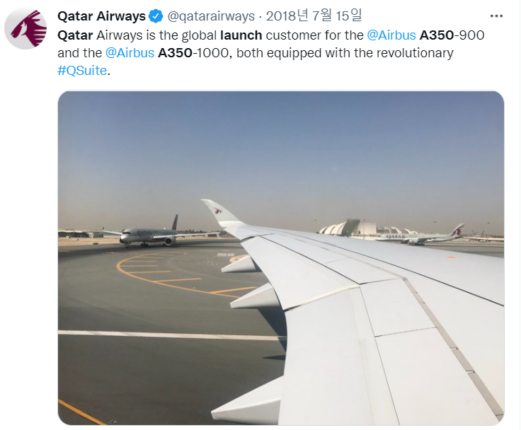 카타르항공은 에어버스사의 최신 중장거리 기종인 A350을 첫번째로 인도받은 항공사로,