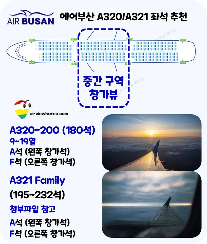 그럼 에어부산 항공기를 탈 때, 어느 좌석에 앉아야 SNS에서 봤던 멋진 날개뷰를 볼 수 있는지 자세히 알려드릴게요!