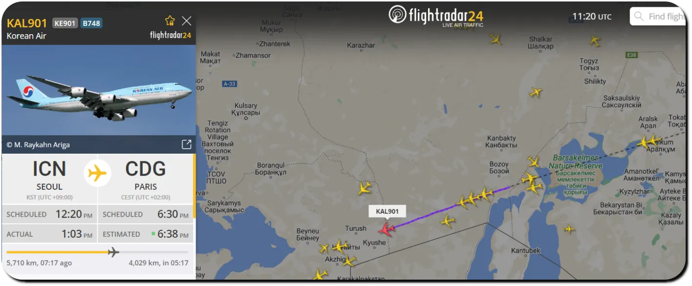 위와 같이 현재 이동중인 항공편의 위치와 비행기 및 도착 예정 시간 정보를 자세히 볼 수 있다