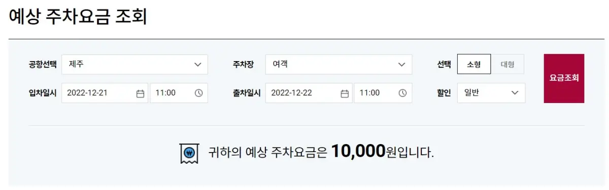 제주공항의 여객/화물주차장 요금은 30분 단위로 직접 조회할 수 있습니다