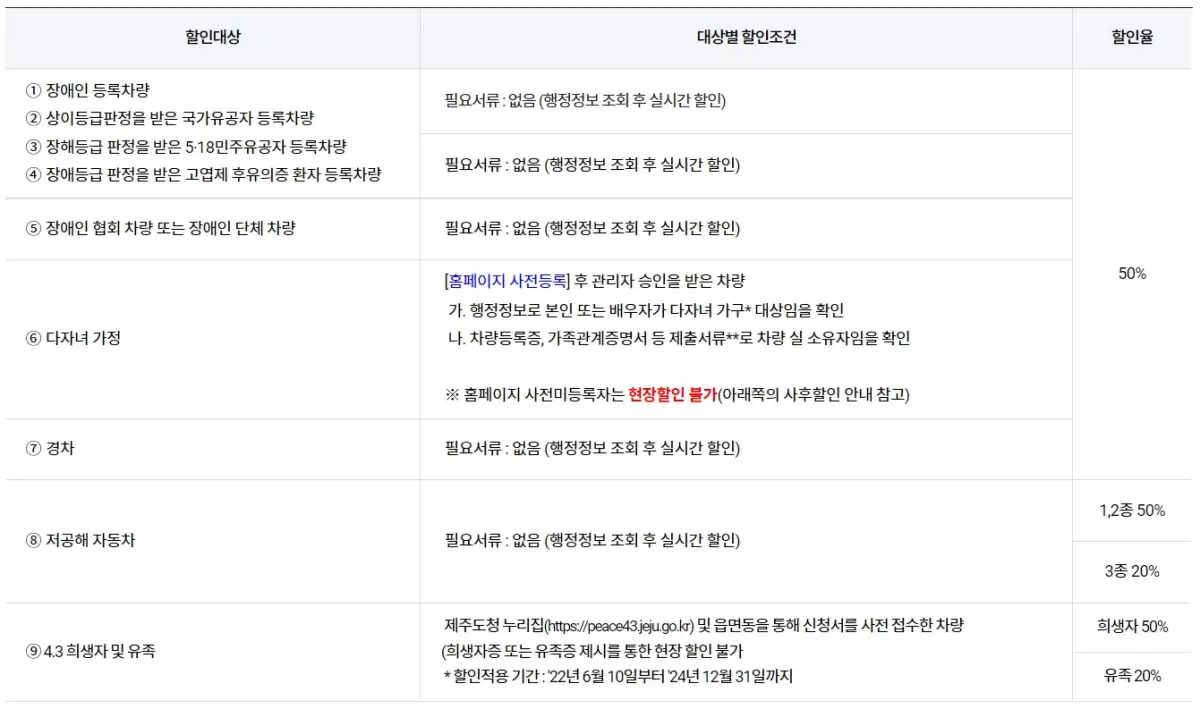 - ⭐️ 1. 경차, 다자녀 가정 할인 : 50%