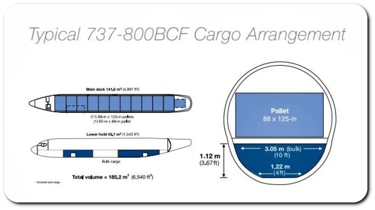 B737 여객기 대비 약 7배 정도 많은 화물을 탑재할 수 있는데,