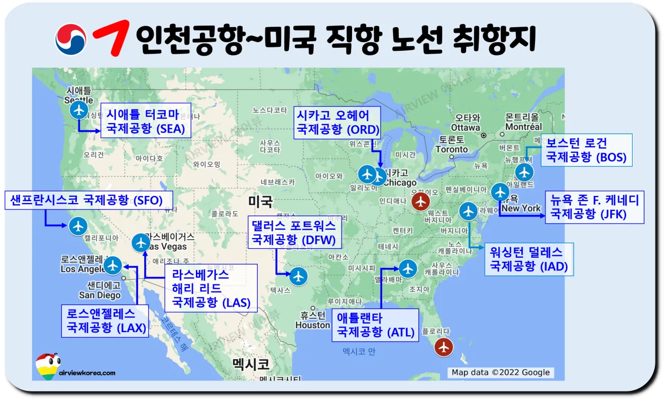 대한항공, 아시아나 미국 직항 취항지 @airviewkorea.com