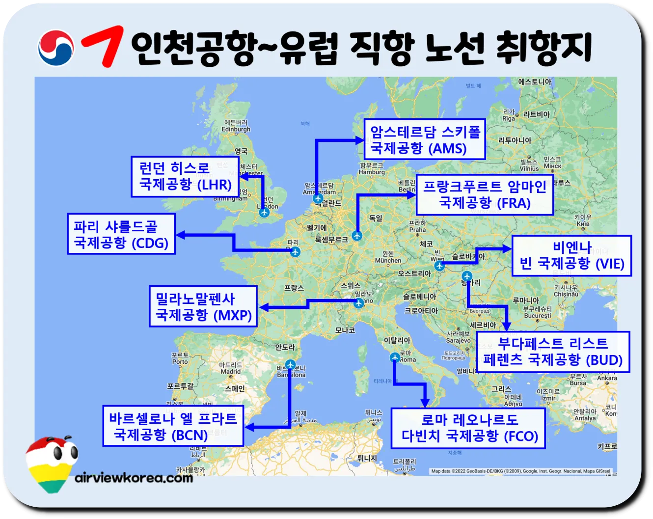 대한항공, 아시아나 유럽 직항 취항지 / @airviewkorea.com