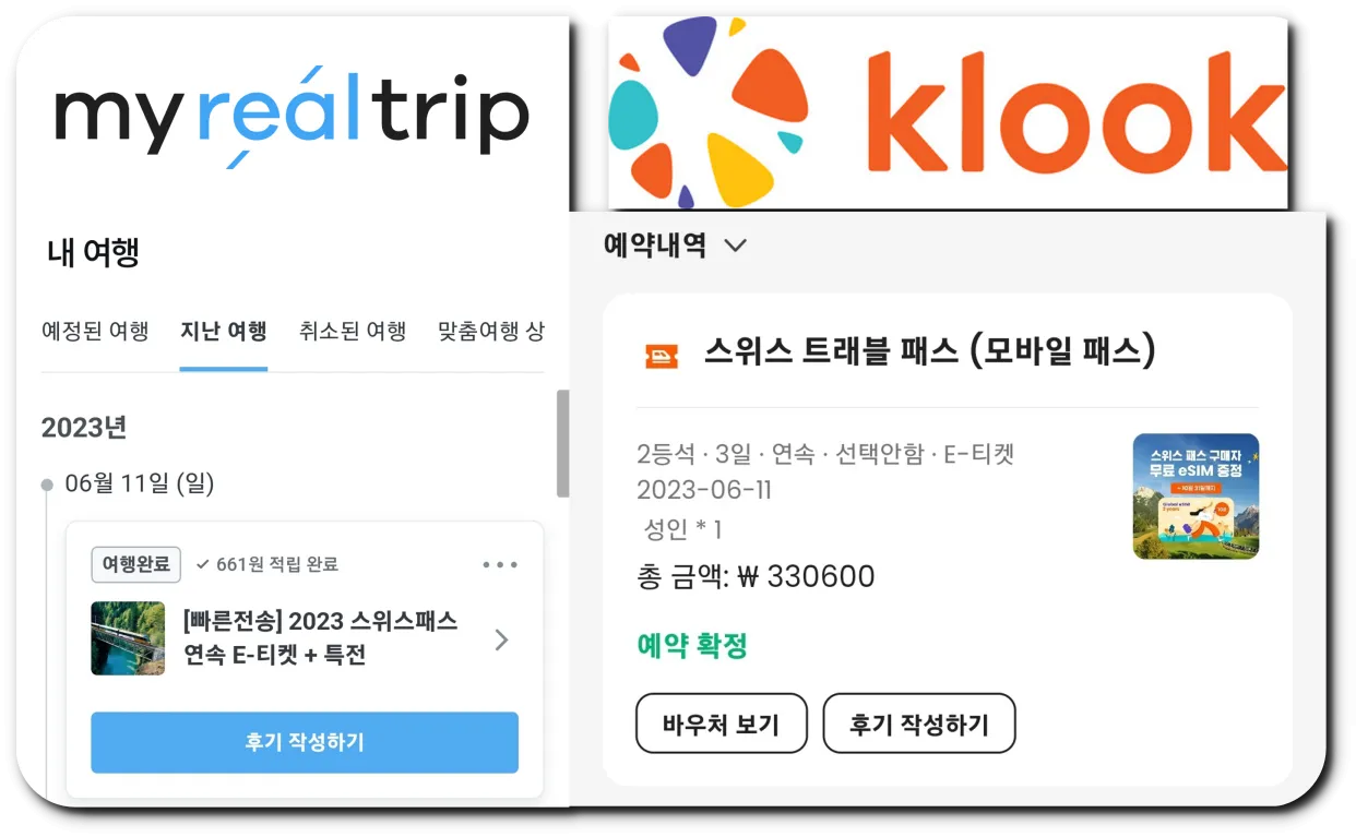 저는 2023년 6월에 클룩과 마이리얼트립에서 각각 스위스패스를 직접 구매해서 사용했으며,