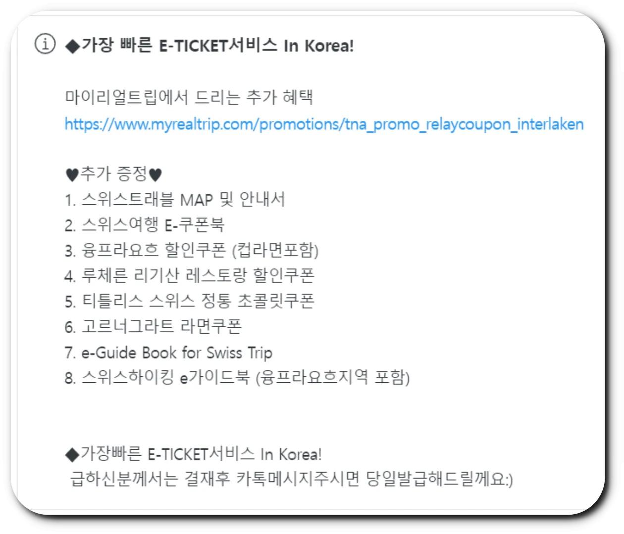 잘 모르는 상태에서는 일단 그냥 스위스패스만 주는 것보다는 훨씬 좋은 느낌이 듭니다