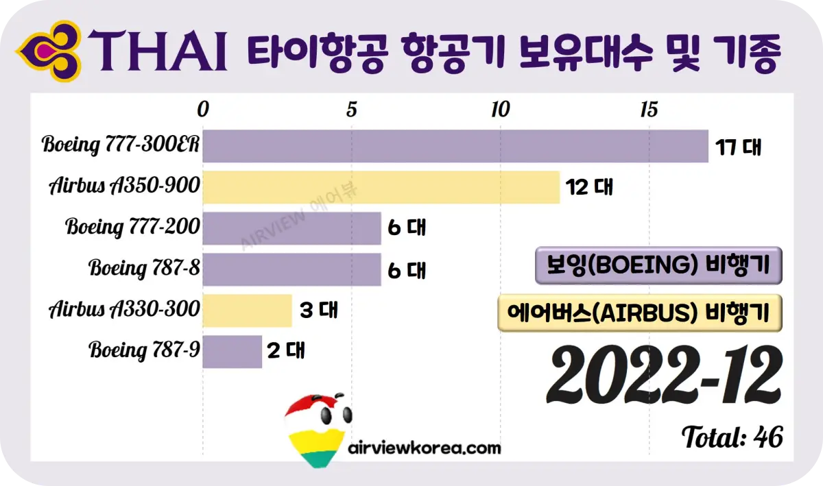 타이항공 항공기 순위✈️ 보유 대수는 몇대? 기종 분석