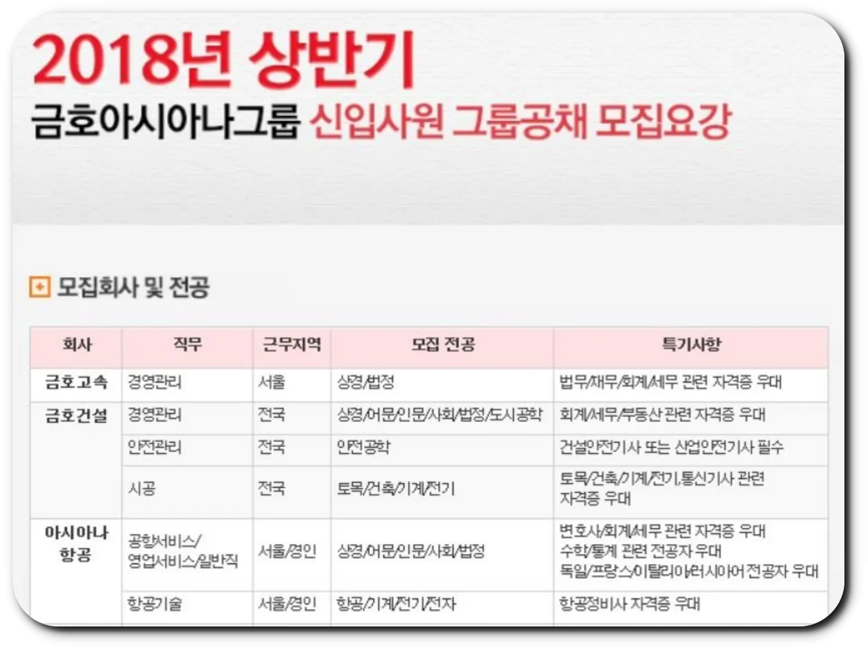 2018 아시아나항공 상반기 일반직 채용 지원 자격 전공