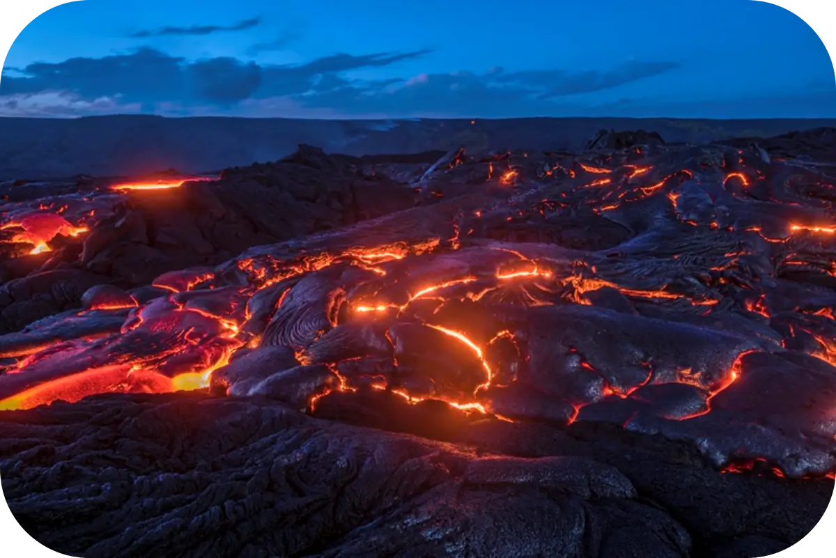 헬기 투어를 통해 현재 활화산에서 나오는 용암도 볼 수 있습니다.