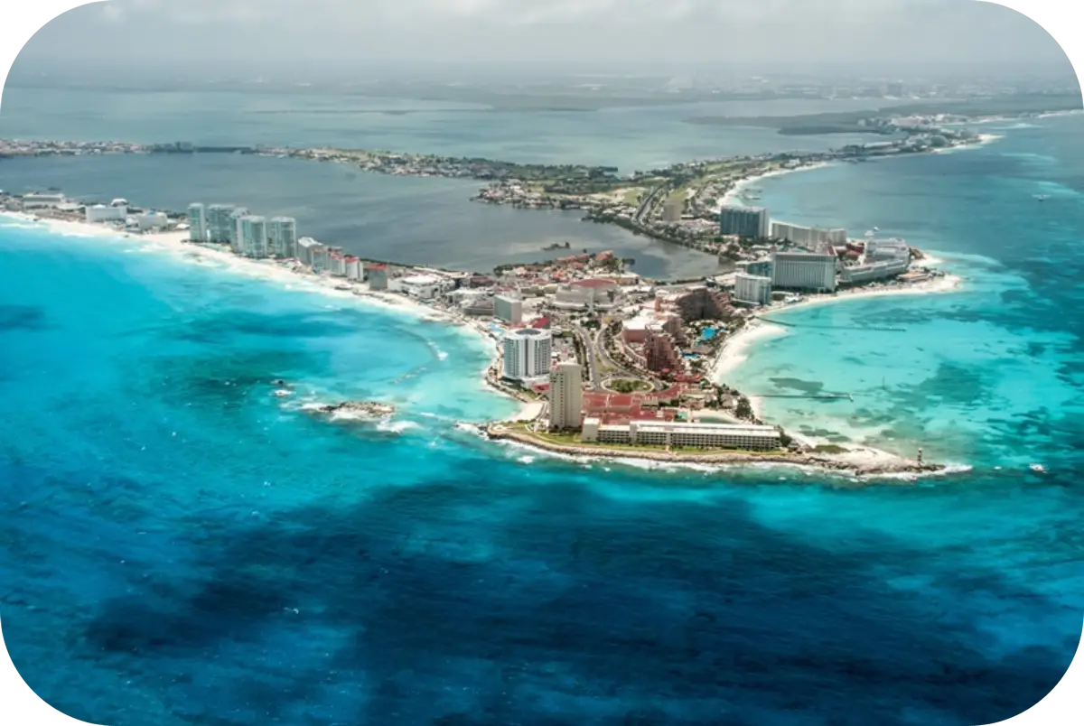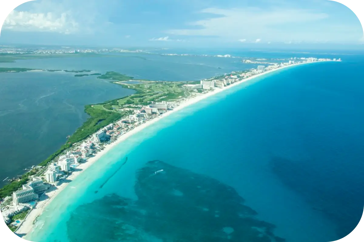 칸쿤은 멕시코 동남쪽에 있는 휴양지로 UN의 인증을 받은 관광 특화 휴양지입니다.