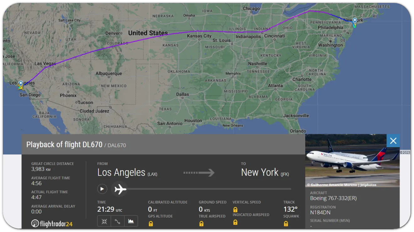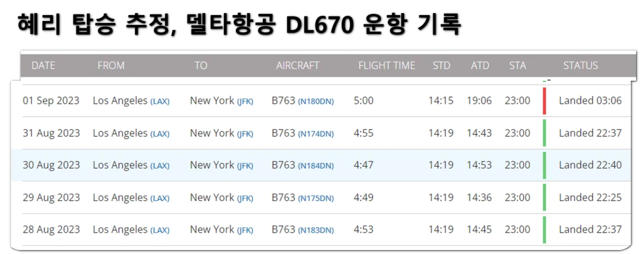 최근 LA-뉴욕행 델타항공 운항 기록