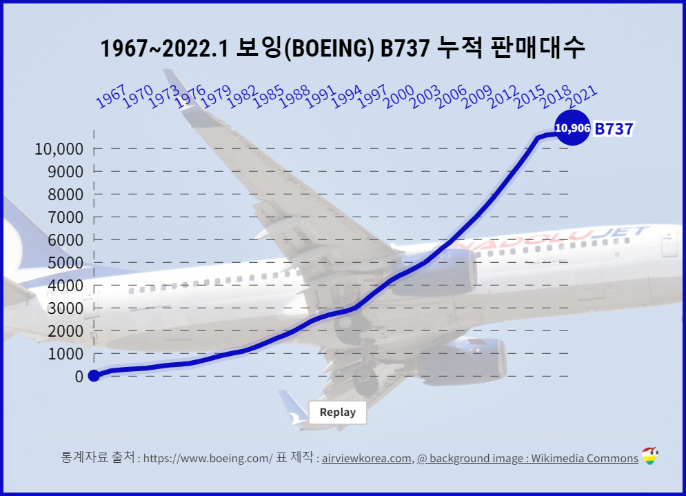 [1967~2022] BOEING B737 판매대수(인도완료)