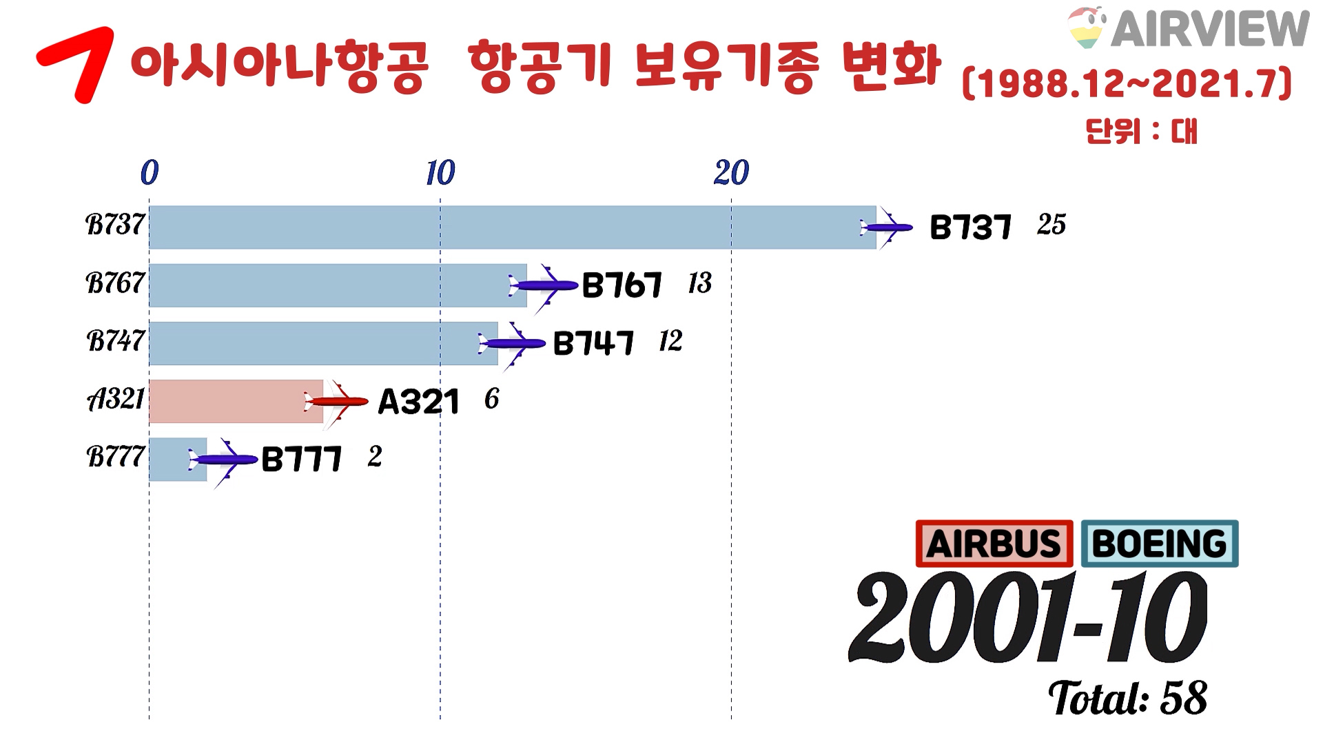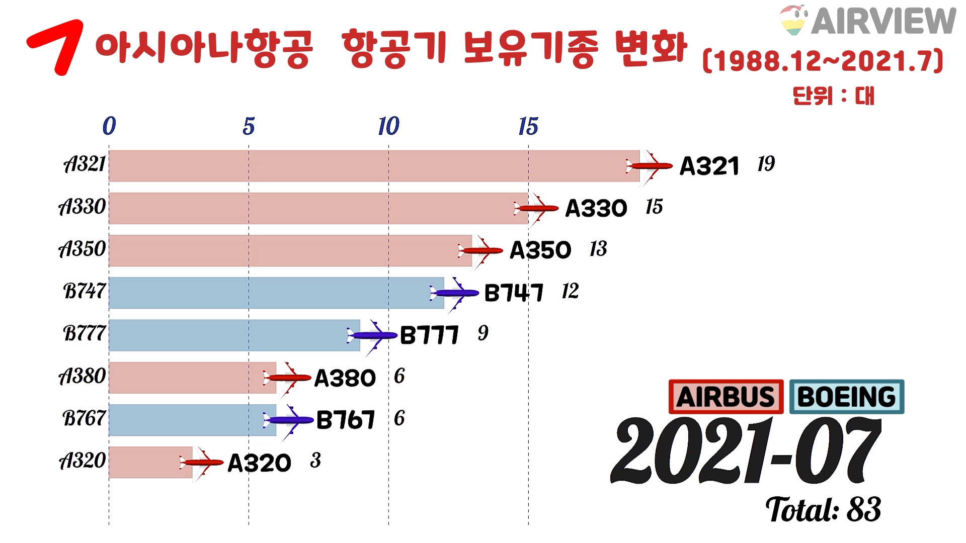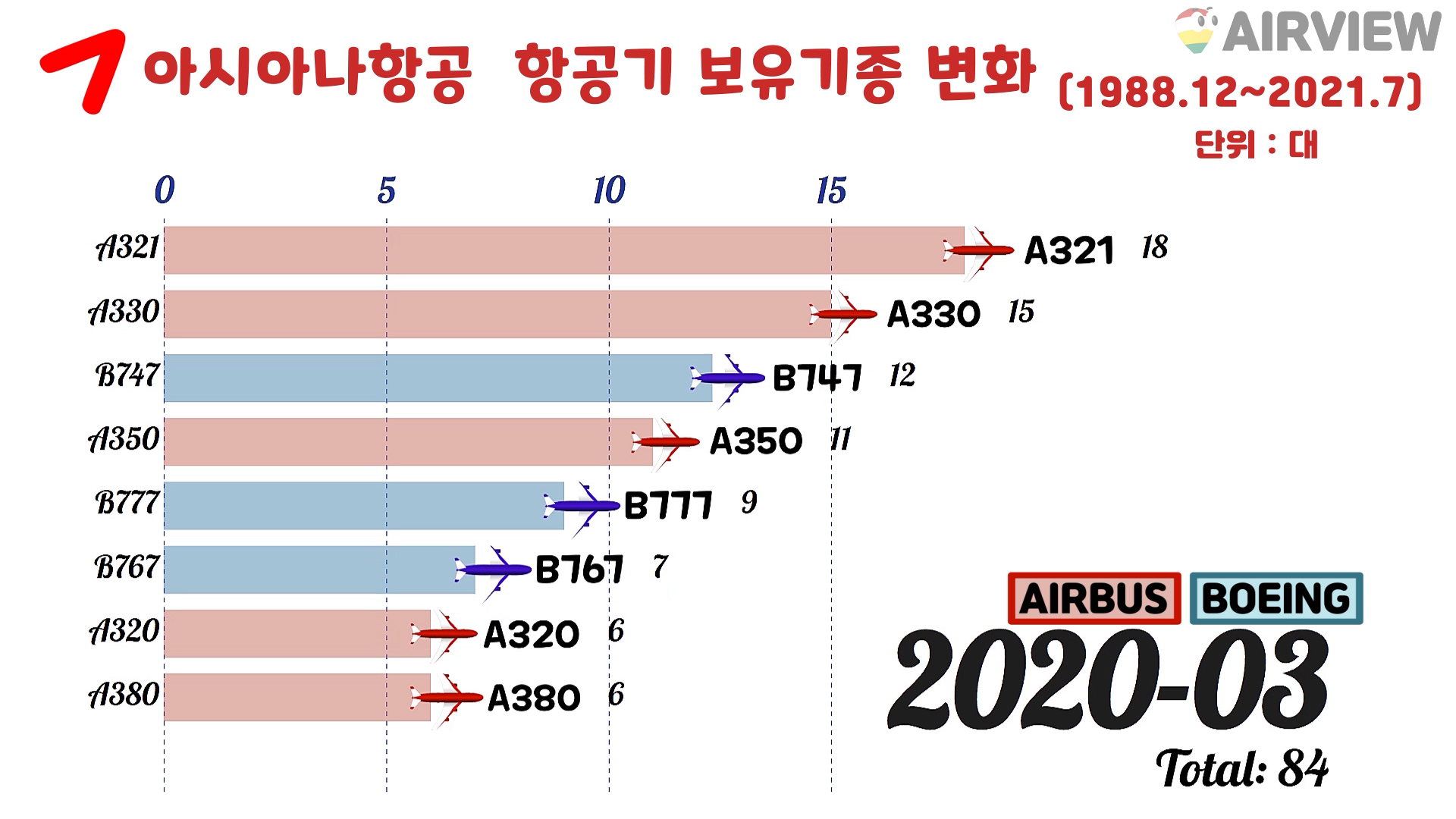 [1988~2021년 7월] 대한항공 vs 아시아나항공 비행기 기종 비교 [BOEING/AIRBUS 항공기]