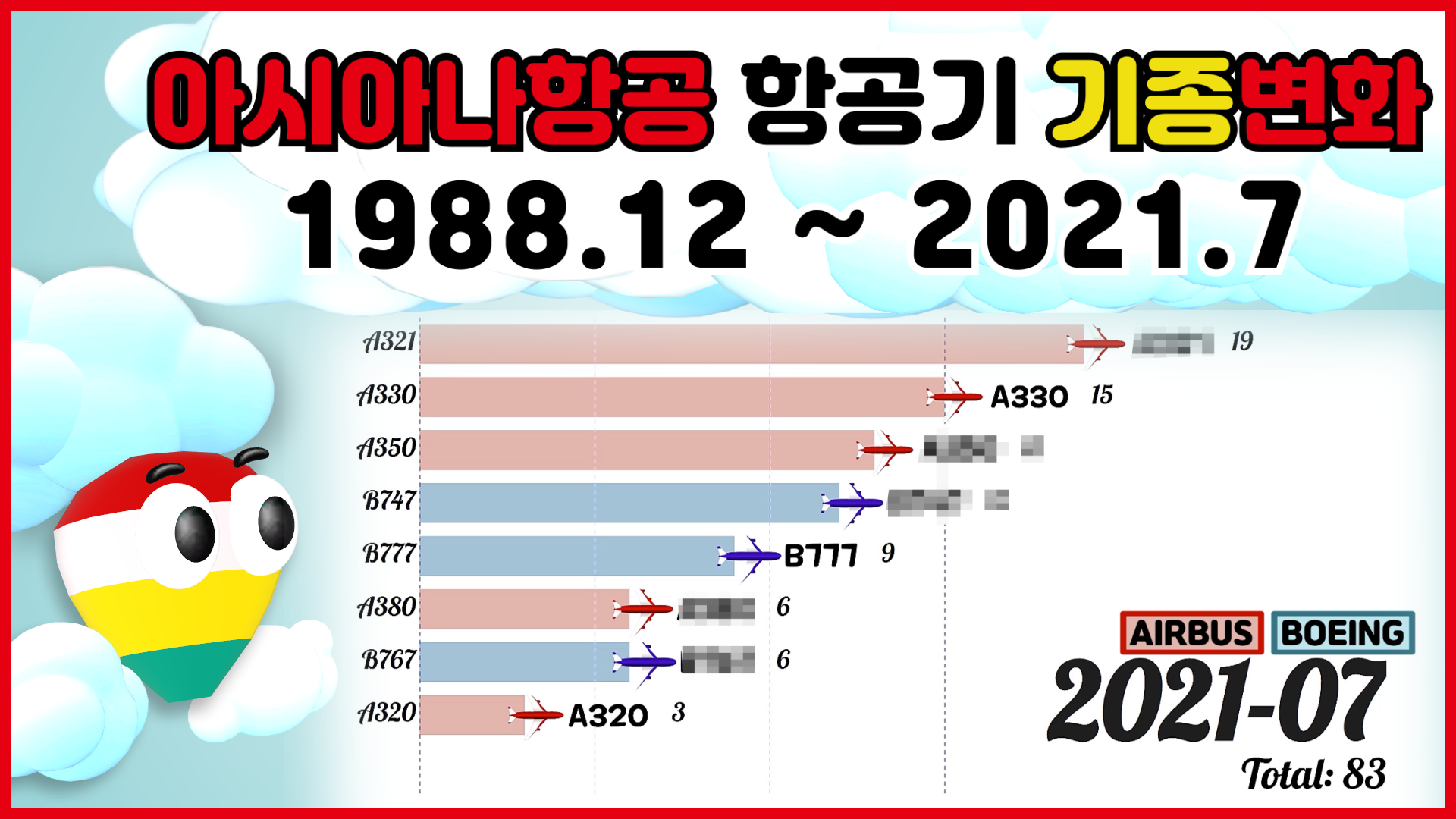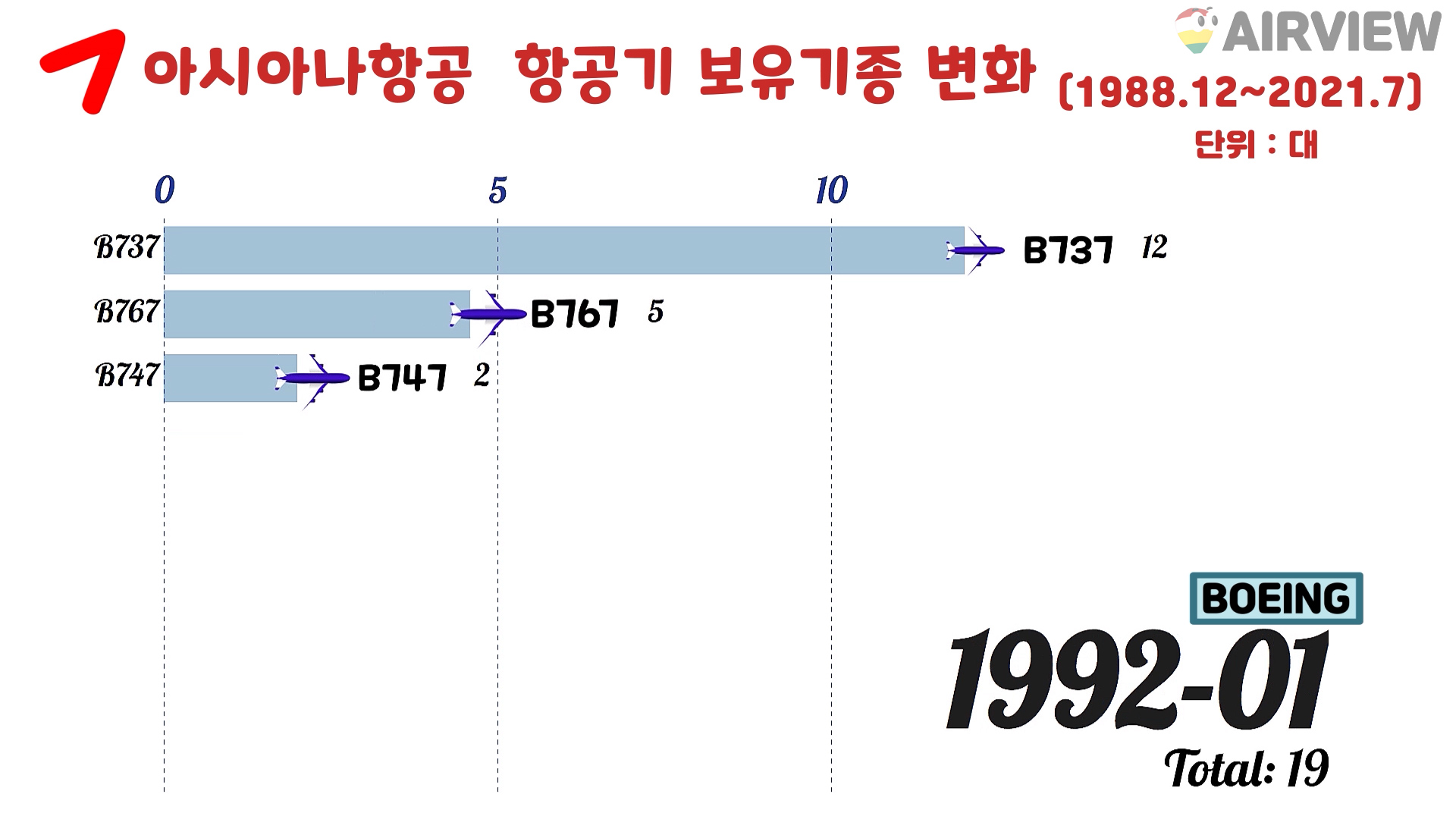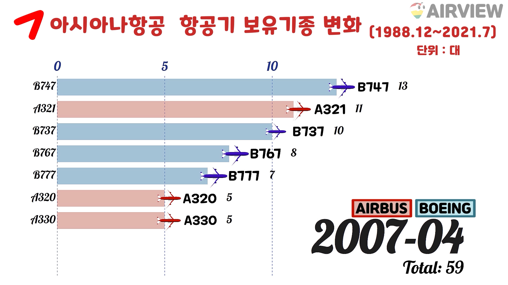 [1988~2021년 7월] 대한항공 vs 아시아나항공 비행기 기종 비교 [BOEING/AIRBUS 항공기]