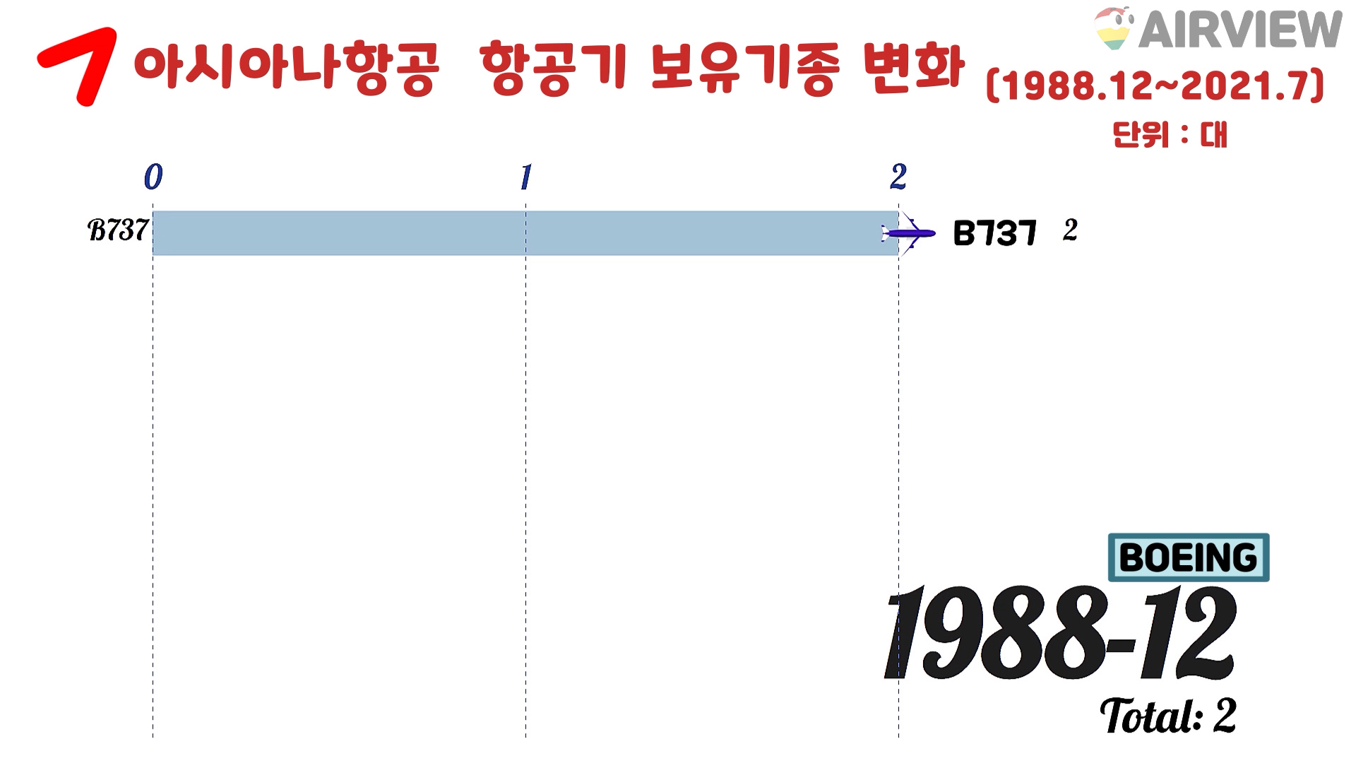 1988.12~2021.7 아시아나항공 항공기 보유기종/보유대수 현황 변화