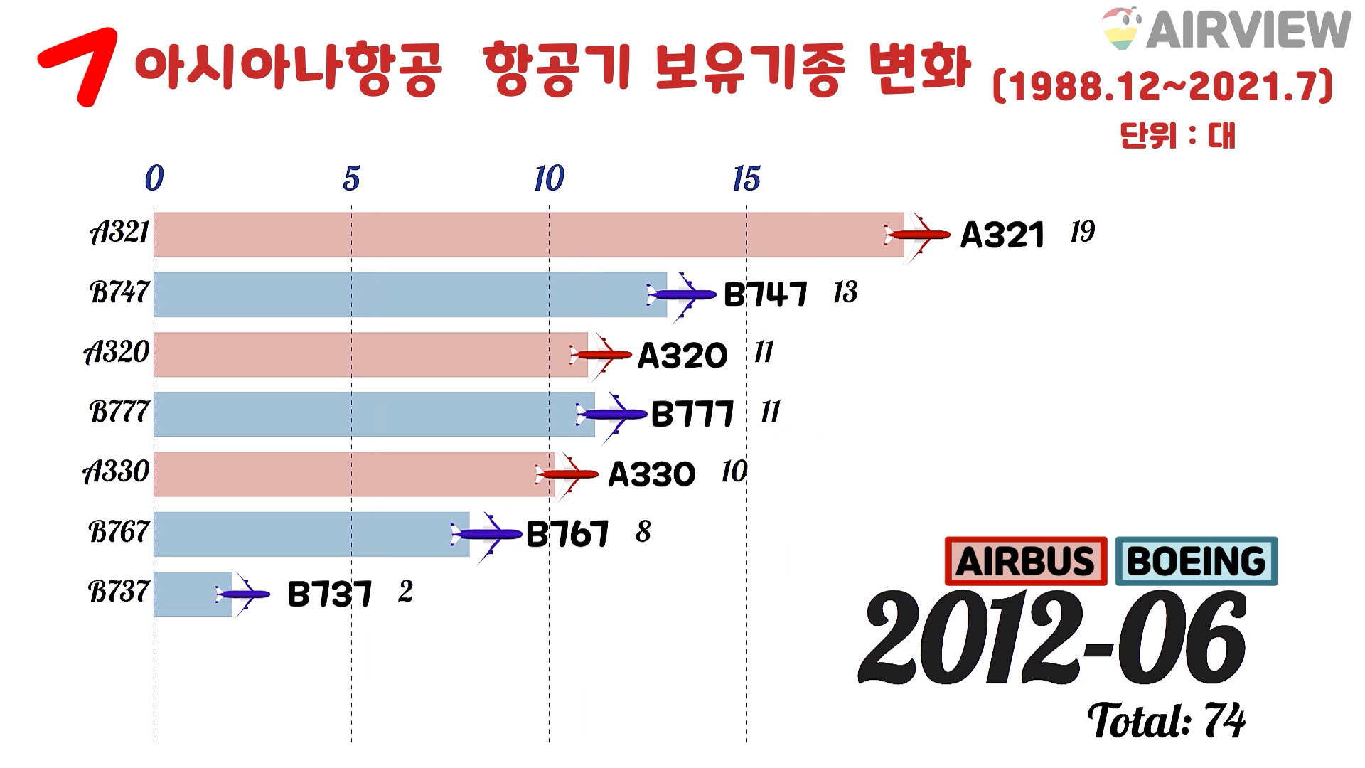 [1988~2021년 7월] 대한항공 vs 아시아나항공 비행기 기종 비교 [BOEING/AIRBUS 항공기]