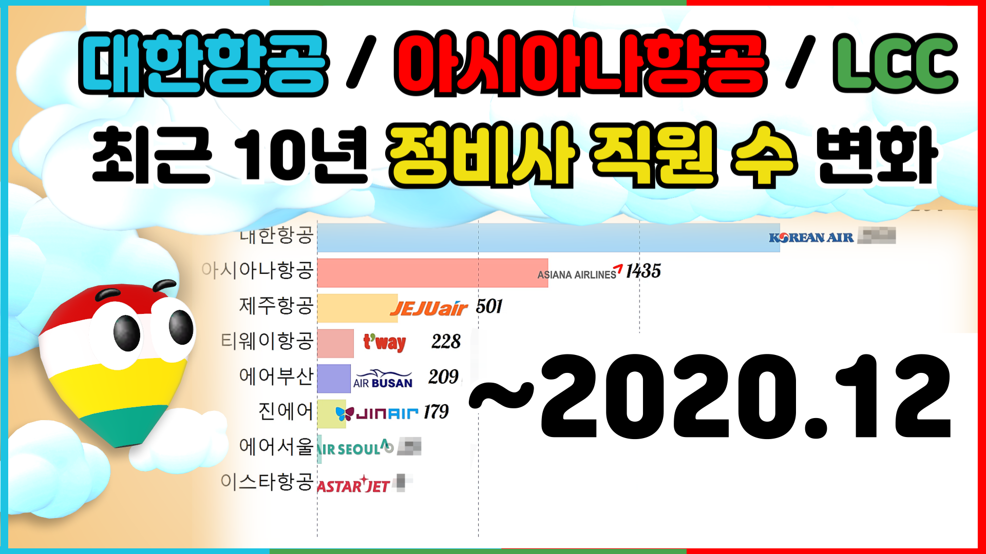 이번 포스팅에서는 최근 10년간 우리나라 국내 항공사 8개의 정비사 직원수 변화 현황에 대해 보여드리겠습니다.