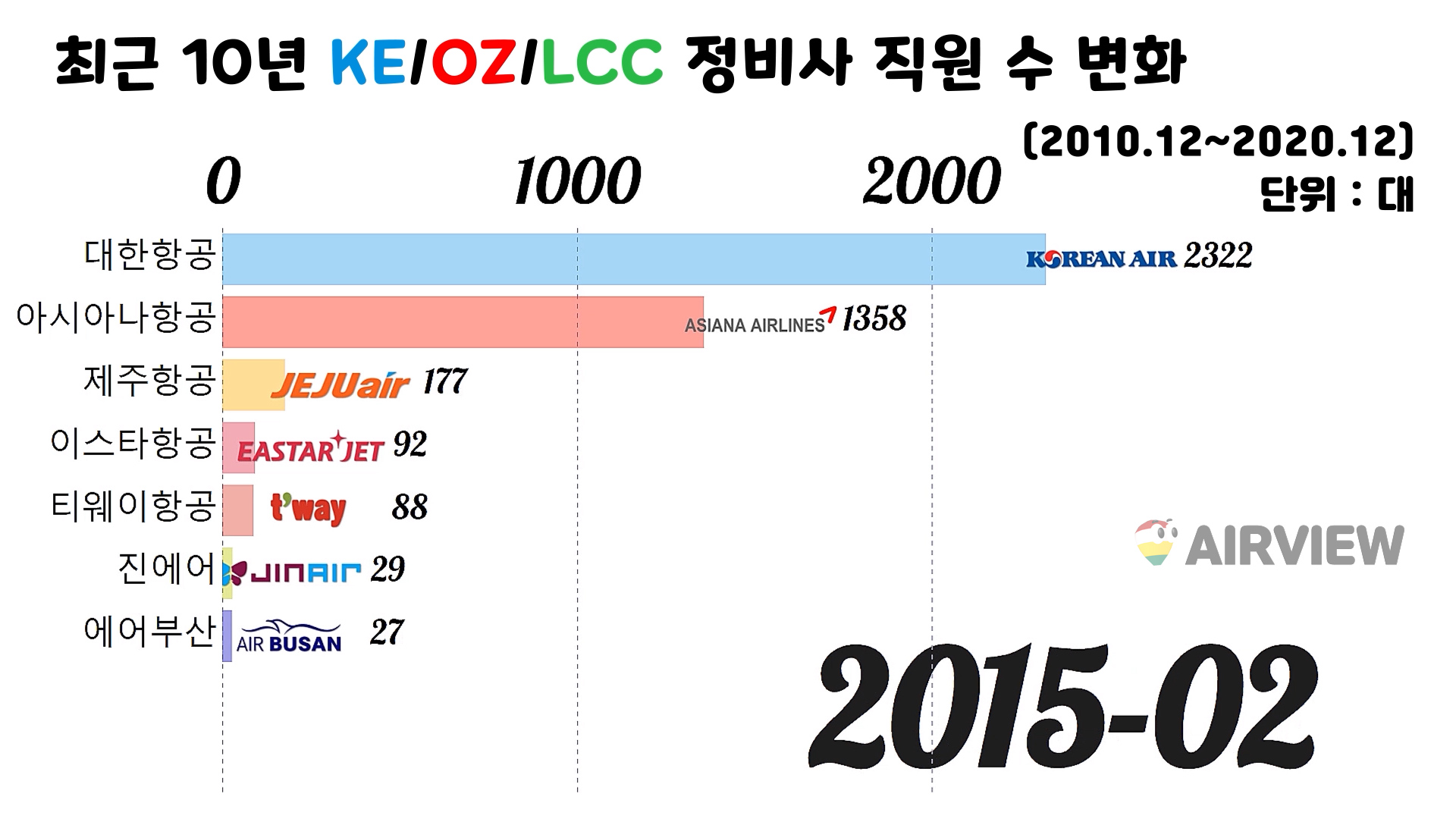저비용항공사들은 항공기를 계속 도입하는 시기이며, 정비사 인원 또한 비례하여 충원했습니다.