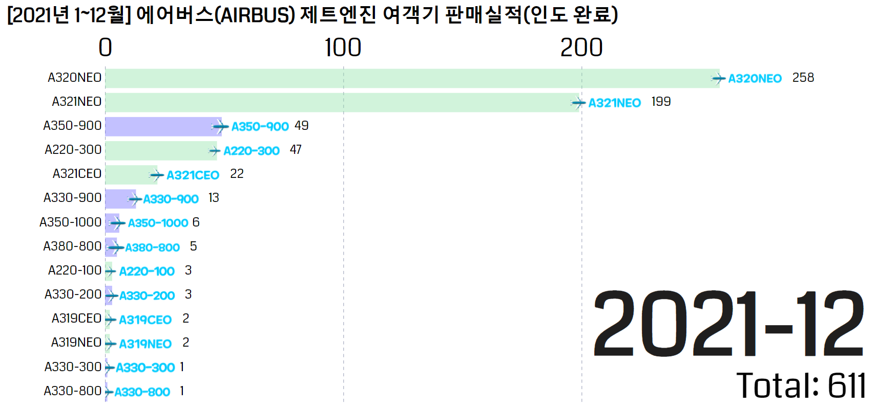 [2021년 1~12월] 에어버스(AIRBUS) 비행기 판매대수는?(인도 실적)