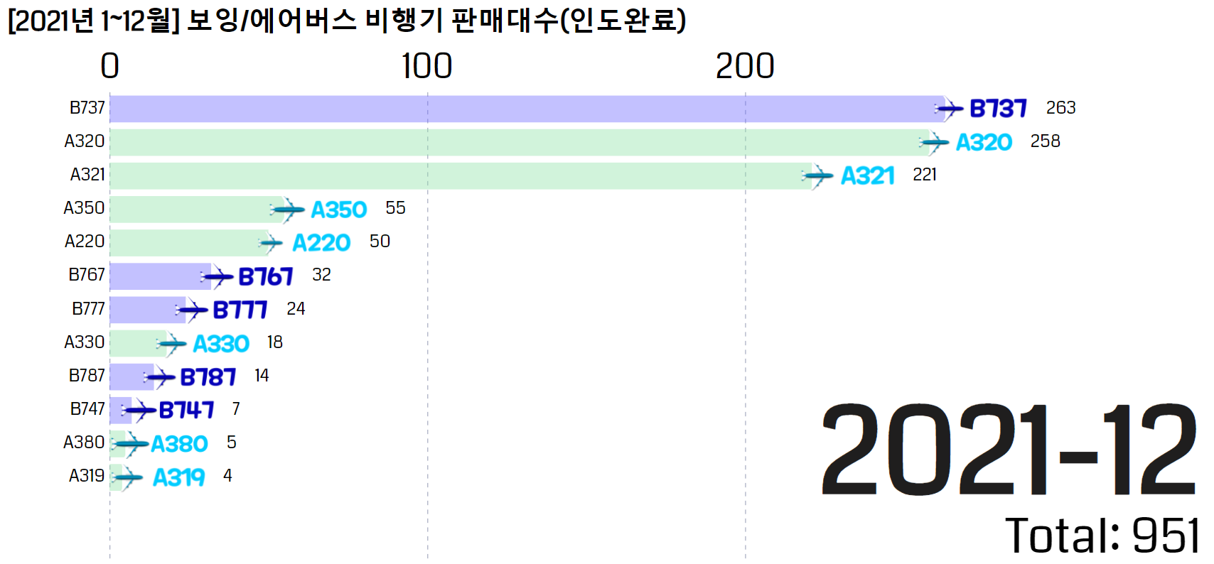[2021년 1~12월] 에어버스(AIRBUS) 비행기 판매대수는?(인도 실적)