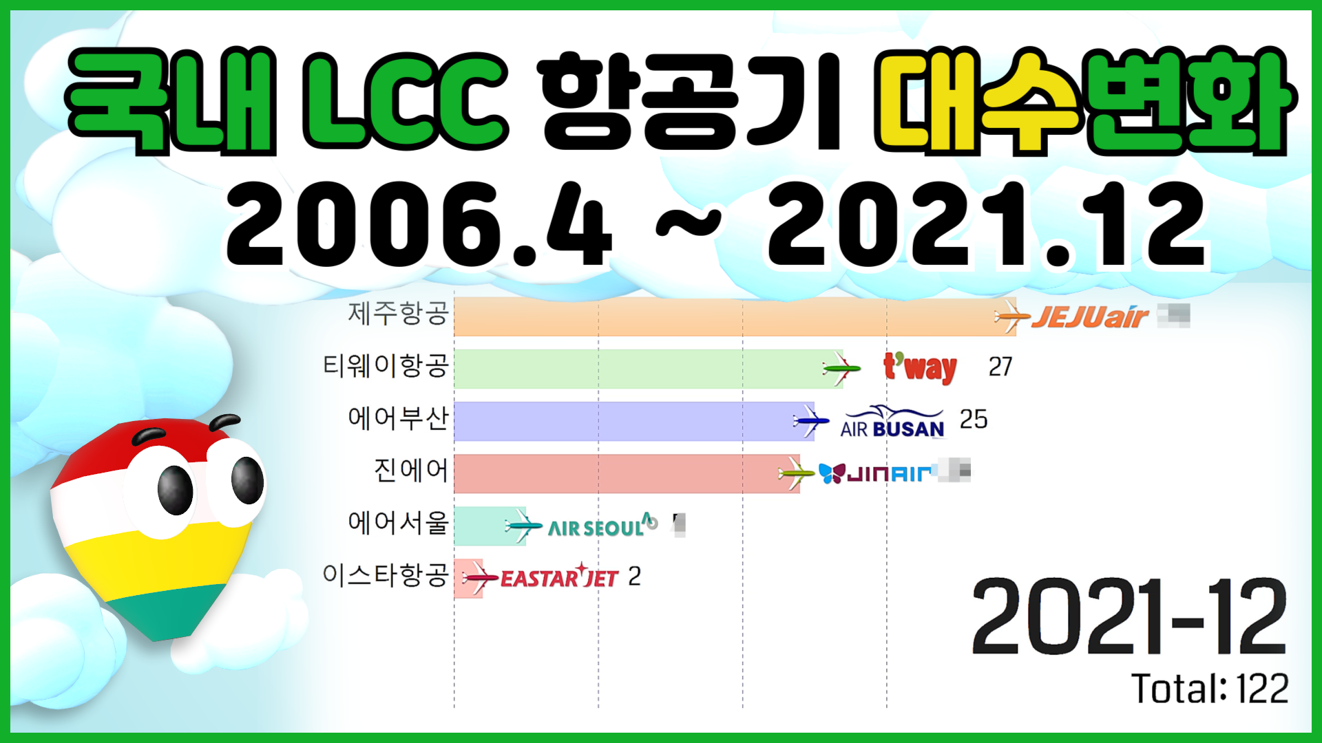 2021년 12월 기준, 우리나라 저가항공사(LCC) 6개 기준 비행기 보유대수 변화 현황에 대해 알려드릴게요.