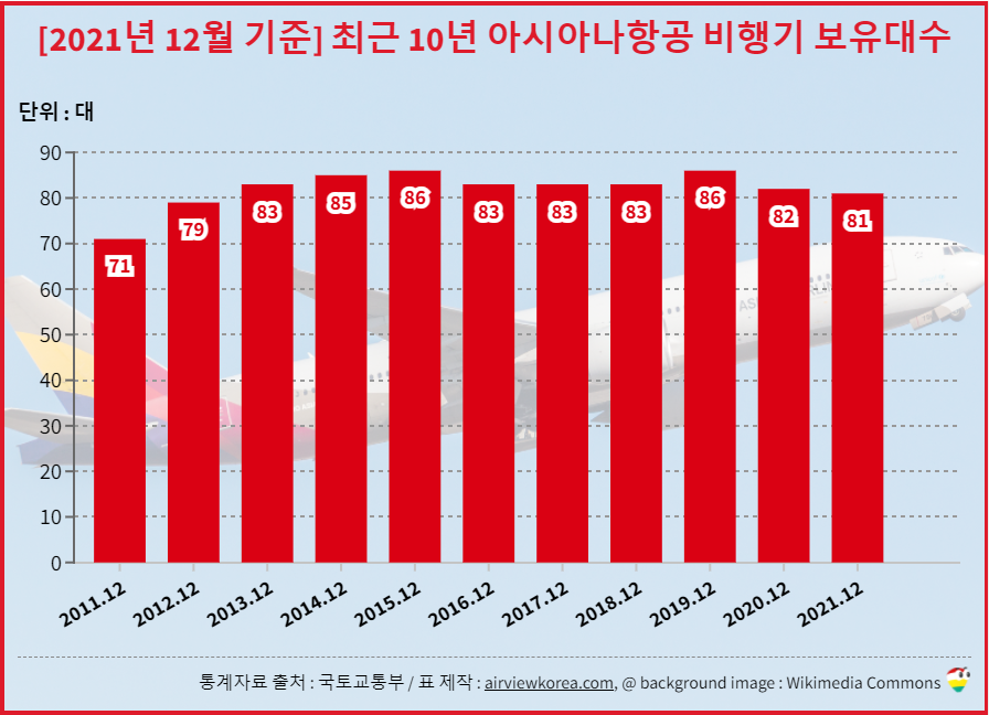 [~2021년 12월] 최근 10년 아시아나항공 비행기는 몇대? 보유대수/보유기종 변화 (BOEING[보잉] AIRBUS[에어버스] 항공기)