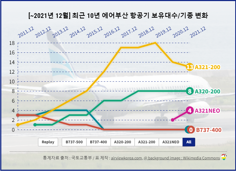 [~2021년 12월] 최근 10년 에어부산 비행기는 몇대? 종류 보유기종/보유대수 변화 (항공기 에어버스 A320-200, A321-200, A321NEO)
