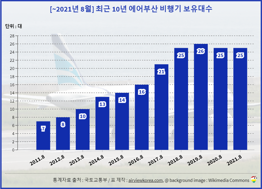 [~2021년 8월] 최근 10년 에어부산 비행기는 몇대? 종류 보유기종/보유대수 변화 (항공기 에어버스 A320/A321)