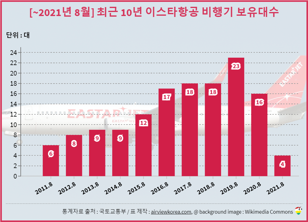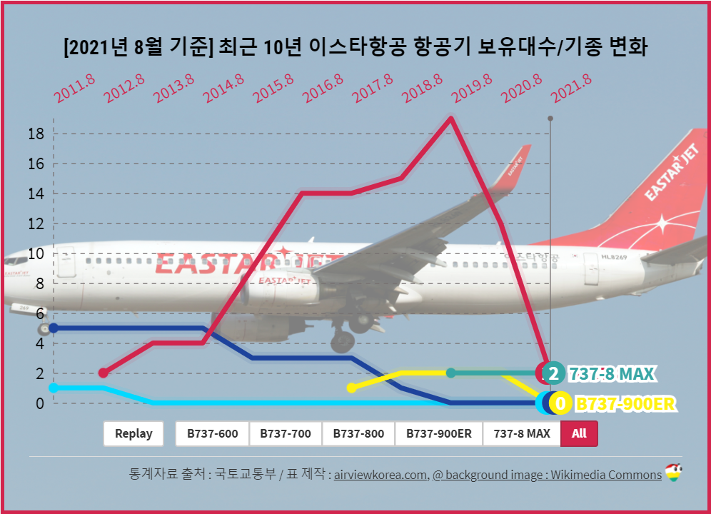 [~2021년 8월] 최근 10년 이스타항공 비행기는 몇대? 종류 보유기종/보유대수 변화 (항공기 보잉 B737)