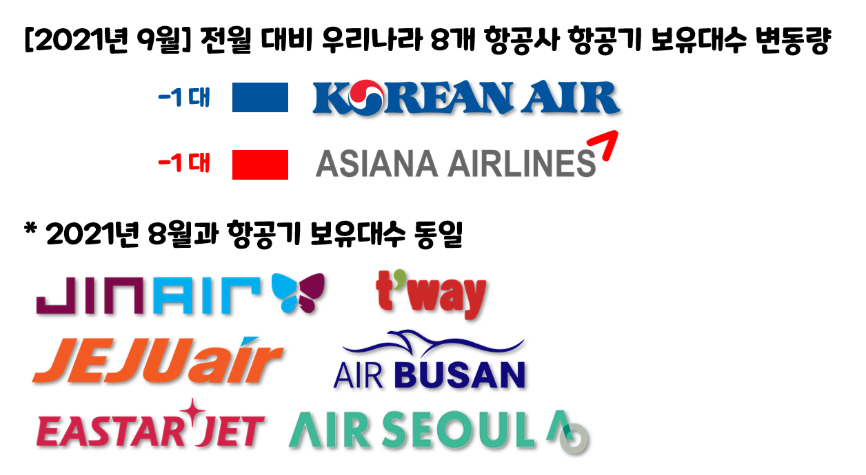 [2021년 9월] 전월 대비 우리나라 8개 항공사 항공기 보유대수 변동량