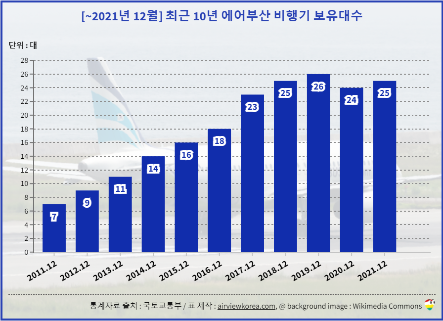 [~2021년 12월] 최근 10년 에어부산 비행기는 몇대일까? 종류 보유기종/보유대수 변화 (항공기 에어버스 A320/A321)